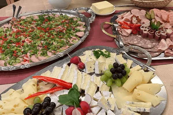 Genießen Sie die große Auswahl unseres reichhaltigen fränkischen Spezialitäten Buffets - dieses enthält auch verschiedene vegetarische Köstlichkeiten