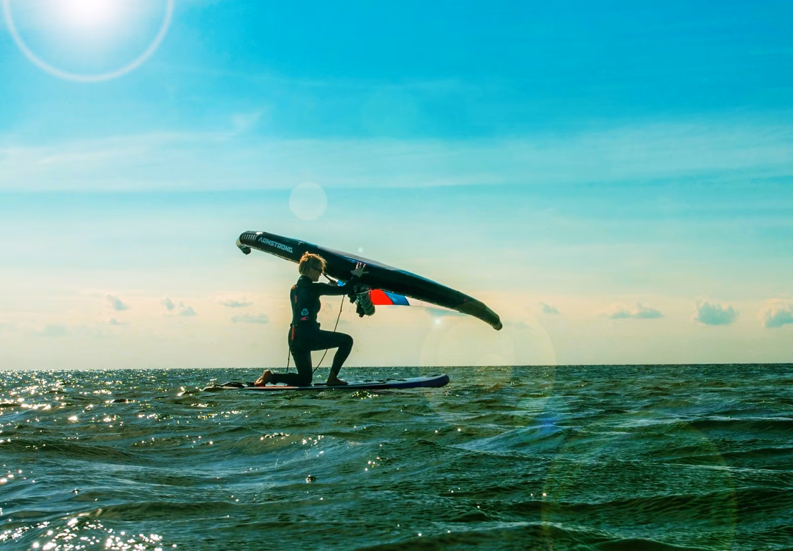 - Komplette WingSurf-Ausrüstung inklusive (Board, Wing, Neopren, Weste, Leash)