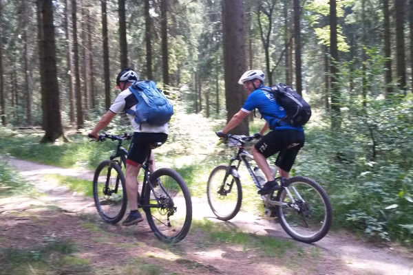 Ihr bekommt eine abwechslungsreiche Route mit fahrbaren Anstiegen und Flowtrails in einer zauberhaften Mittelgebirgslandschaft. Ein Erlebnis, das eine Herausforderung ist, aber keine Überforderung.