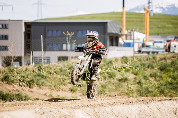 Verbringe einen Vormittag oder Nachmittag beim E-Cross-Fahren, dem ultimativen Erlebnis für Kinder und Erwachsene. Speziell geeignet für Anfänger und leicht fortgeschrittene. Erkunde die vielfältigen Strecken, von sanften Hügeln bis hin zu kniffligen Kurven. Den Ablauf entnimm bitte der Beschreibung. Ankunftszeiten: Vormittags: 09:00 Uhr / Nachmittags: 13:30 UhrAblauf des Programms:Ankunft & Vorbereitung (30 Min) Anziehen der Ausrüstung, Gruppeneinteilung, Ausgabe der MotorräderFahrzeug-Einweisung (5 Min) Erklärung der Motorräder und SicherheitsinstruktionenEinfahren (10 Min) Erste Strecke – Kennenlernen des E-BikesBasis Training (30 Min) Praktische Schulung der wichtigsten Fahrtechniken (fahrend, nicht theoretisch)Streckenerkundung (20 Min) Befahren der jeweiligen Strecken, individuelle LeistungsanpassungPause & Akku laden (30 Min) Zeit zum Ausruhen und für ein GetränkFreies Fahren (45 Min) Nutzung aller freigegebenen Strecken – individuell (Kinder, Erwachsene bzw. Fahrerniveau)Rückgabe Motorrad & Ausrüstung (15 Min) Rückstellen der Motorräder und Ausrüstung abgeben